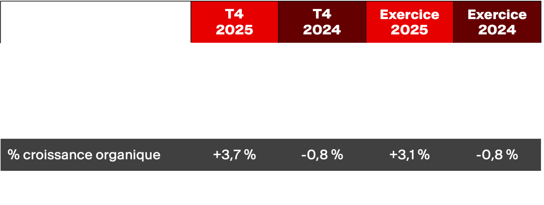 Forte croissance organique au quatrième trimestre 2025.