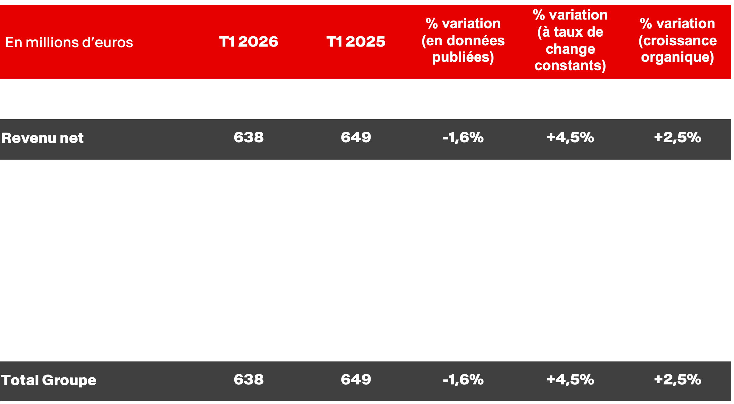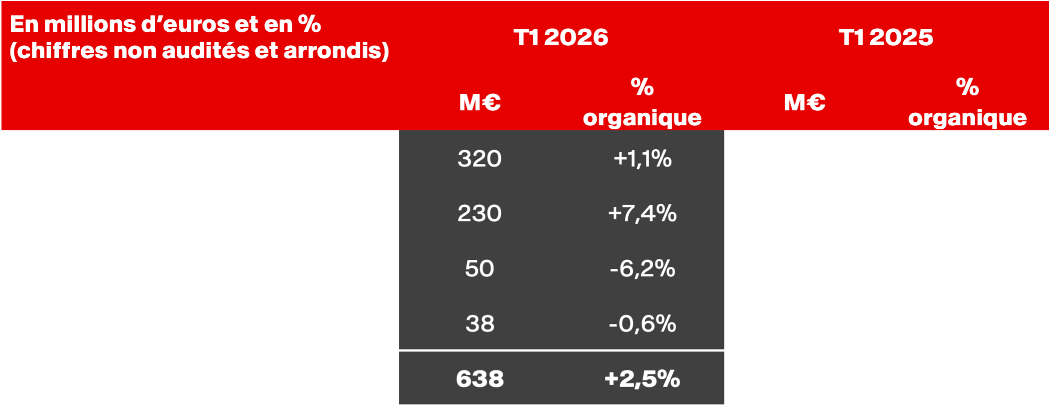 Le chiffre d’affaires atteint 667 millions d’euros, avec une croissance organique3 ode +2,8 %, et le revenu net4 s’élève à 638 millions d’euros, soit une croissance organique de +2,5 % par rapport à la même période en 2025.